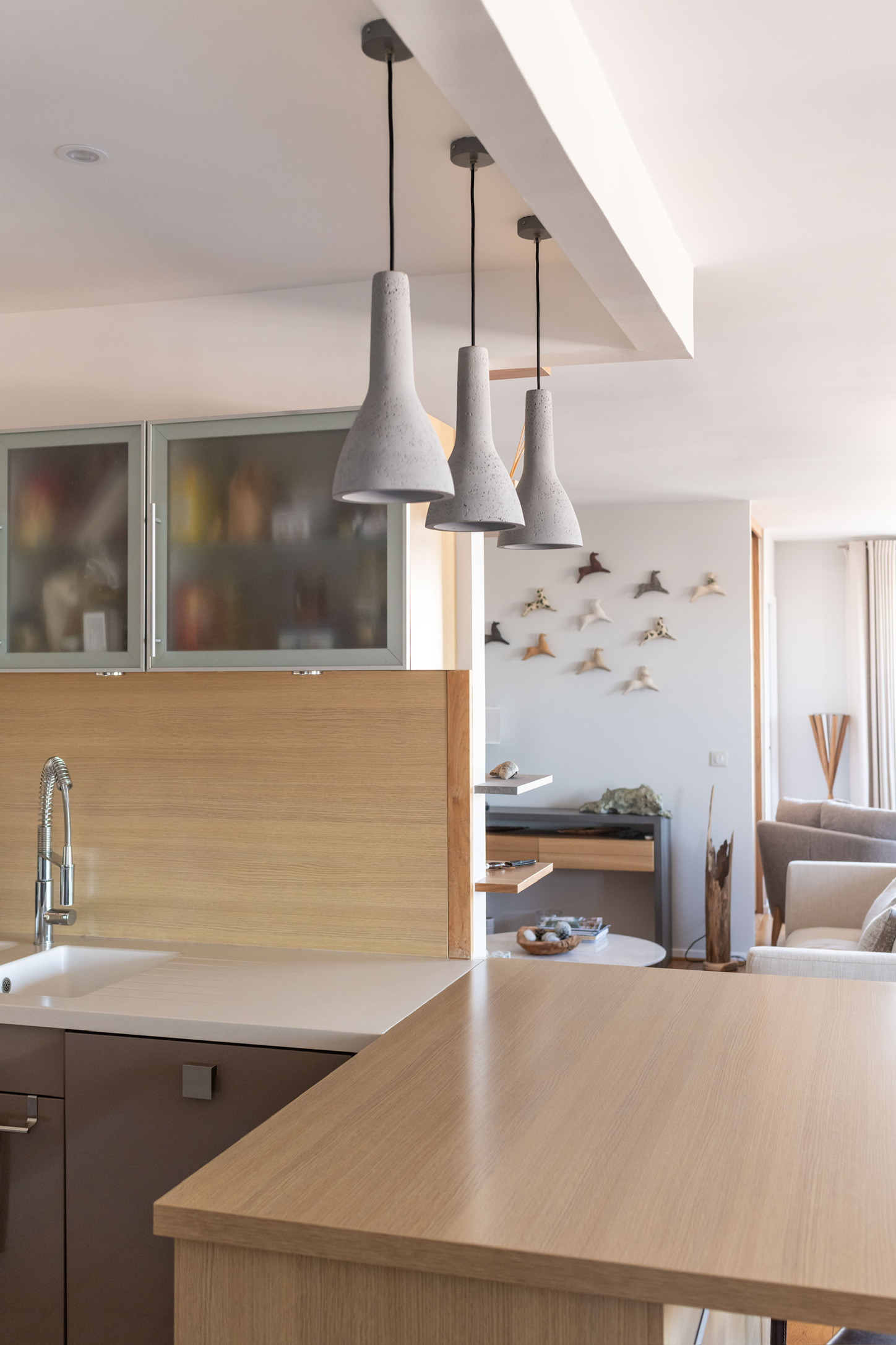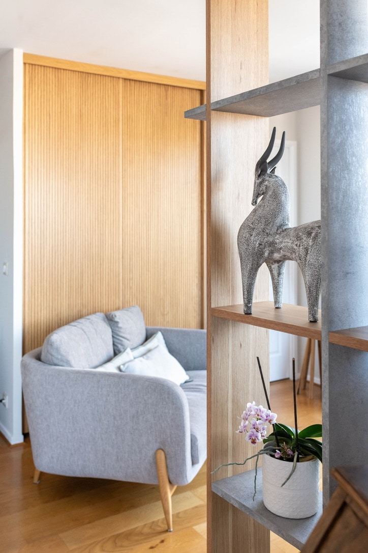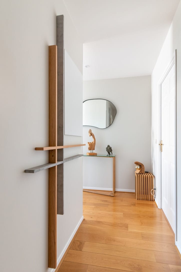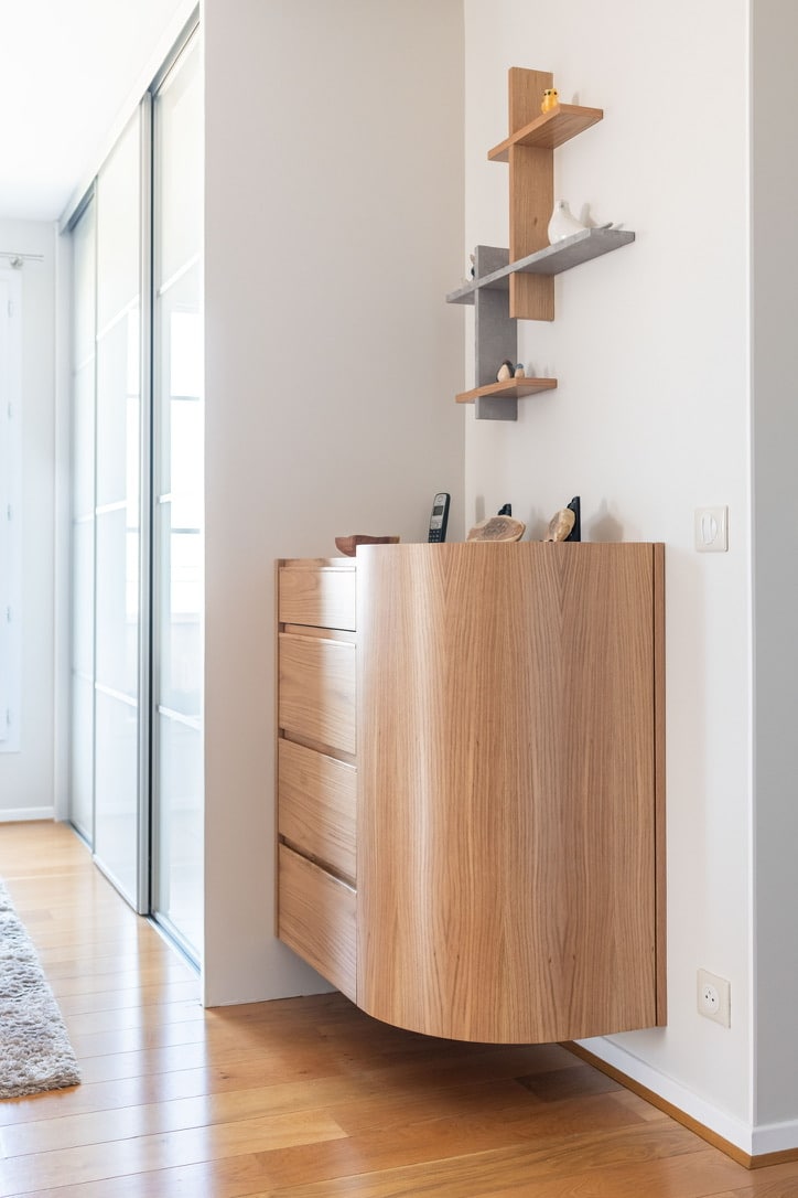 L’agence signe ici un projet complet d’architecture d’intérieur réalisé à Conflans-Sainte-Honorine (Yvelines), mêlant décoration contemporaine, agencement sur mesure et création de mobilier et menuiserie artisanale.